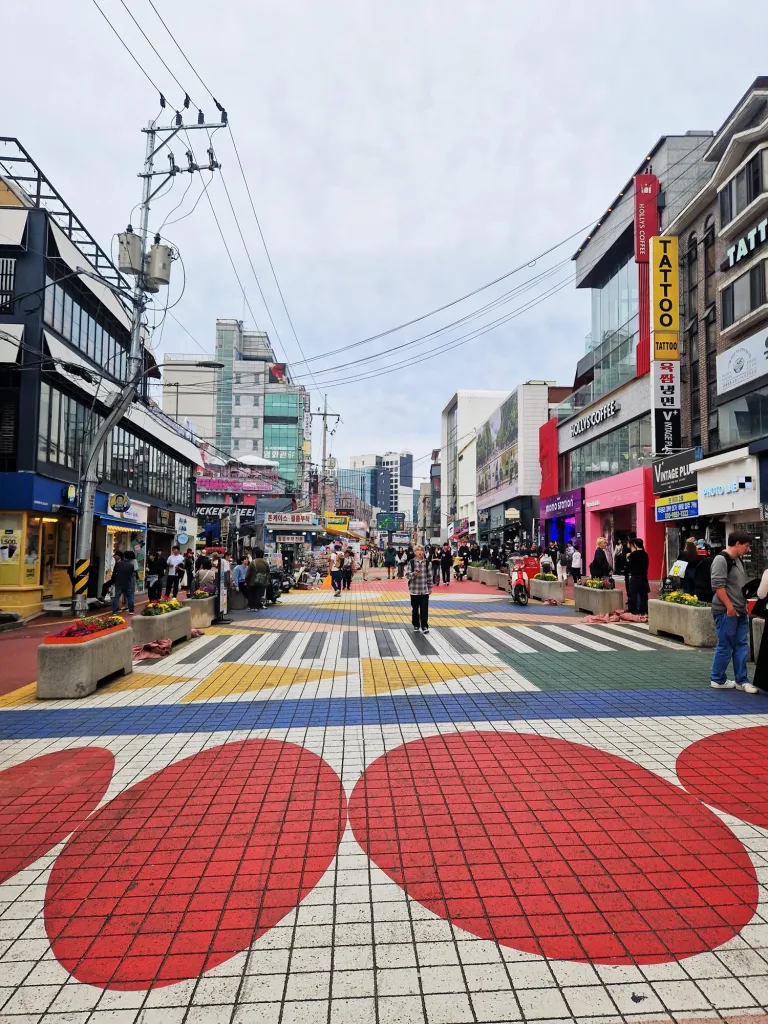 Hongdae is a famous district in Seoul, named after the nearby Hongik University. It is known for its lively atmosphere, independent shops, cute cafés, street performers and nightlife.