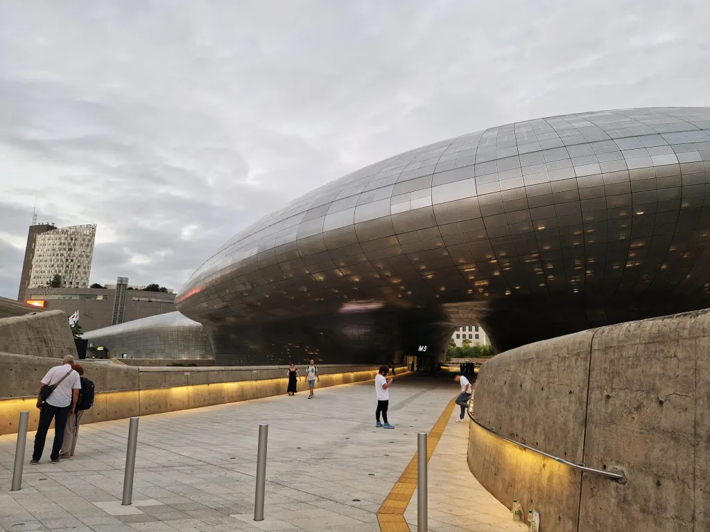 The Dongdaemun Design Plaza (DDP) is a cultural center designed by the famous architect Zaha Hadid. It hosts pop-up stores, exhibitions and cultural and artistic events.
