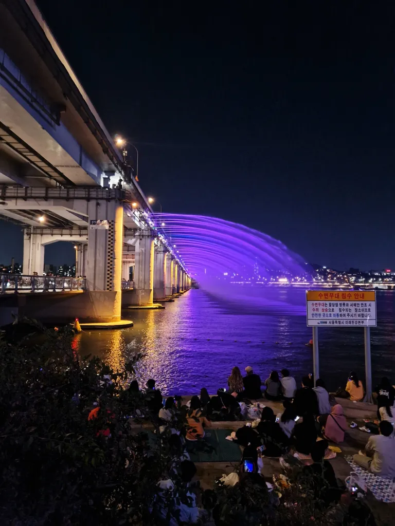 There are 12 different Hangang Parks in Seoul, so you’ll have plenty of choice. I went to the Yeouido Hangang Park for a stroll and some ramyeon (Korean noodles), and to the Banpo Hangang Park to watch a light show next to the bridge. I recommend both!